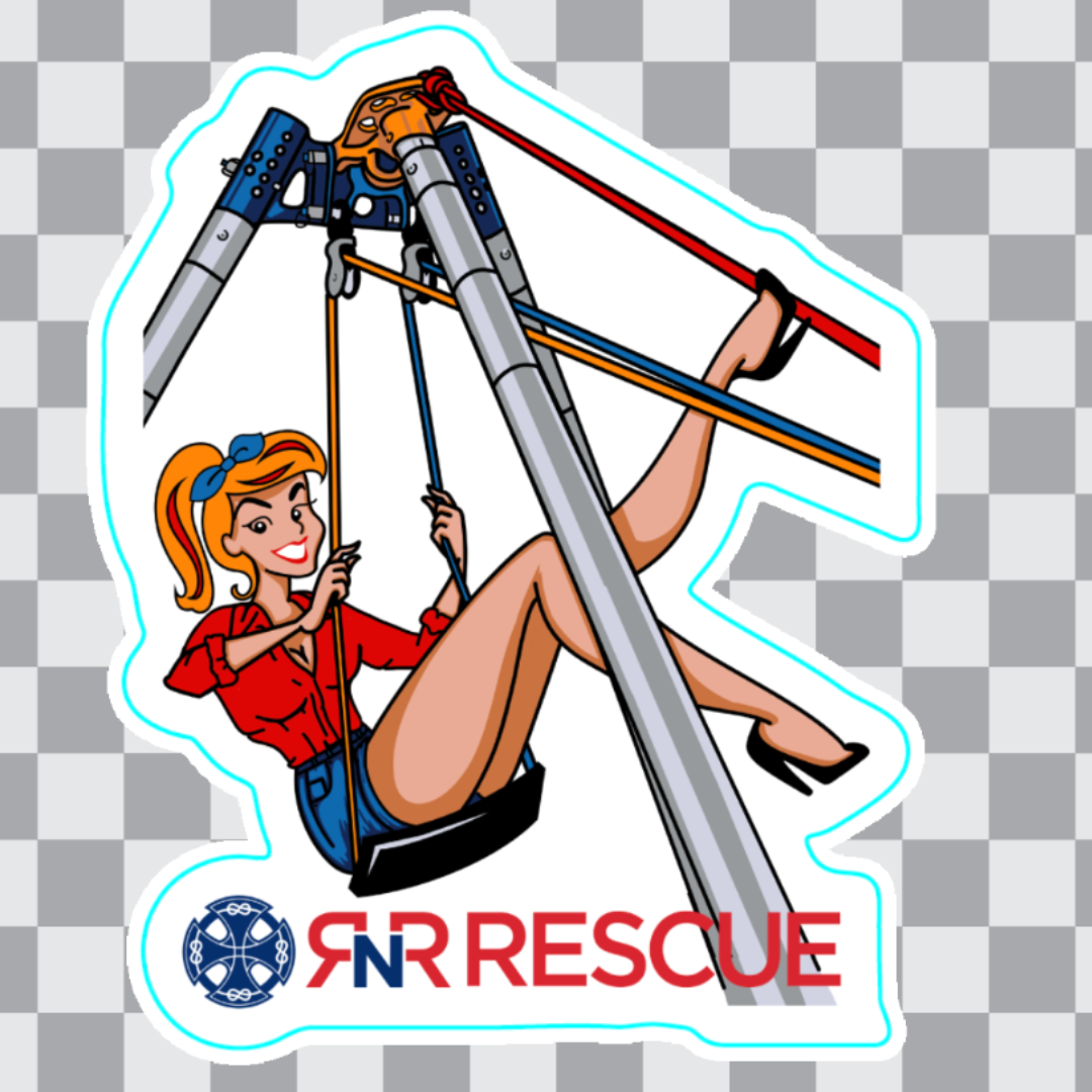 Custom design: pin-up girl hanging under a tripod.